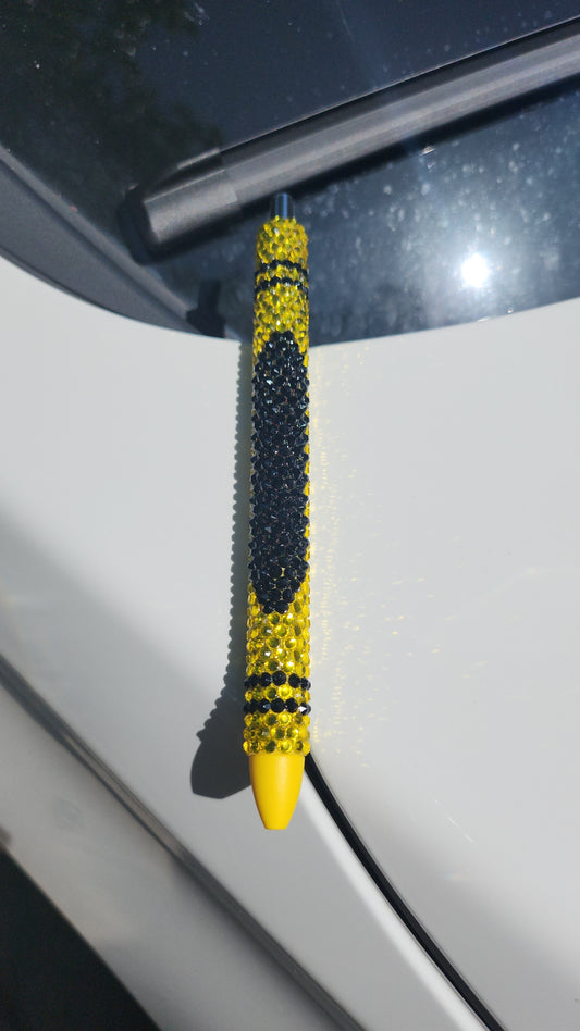 Yellow crayon rhinestone pen